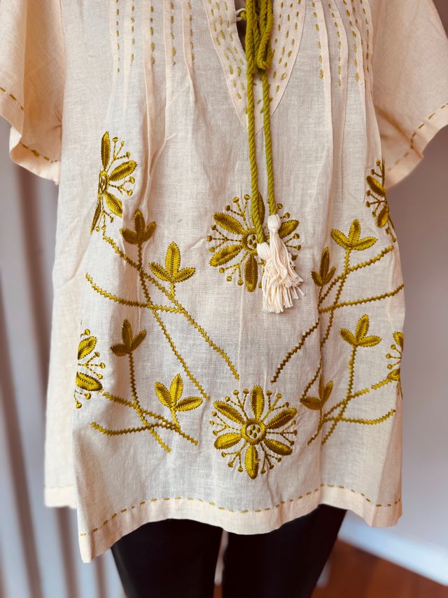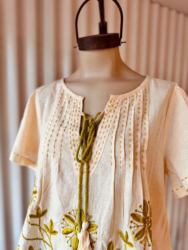 Una prenda fresca y artesanal que celebra los detalles únicos. Confeccionada en lino natural. Ver más detalles