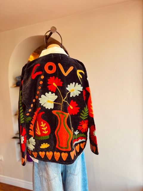 Campera de terciopelo bordada a mano – Reversible, importada de India