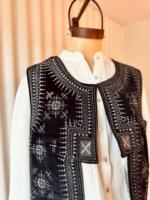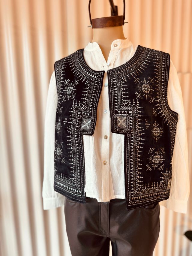 Este chaleco combina la elegancia de la pana con el carácter de los bordados tradicionales. Ver más detalles
