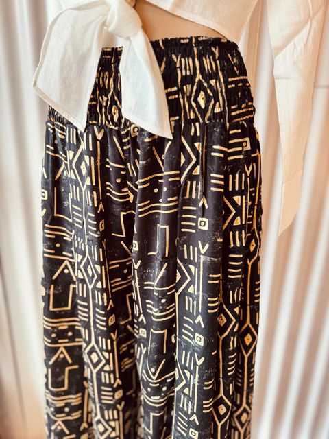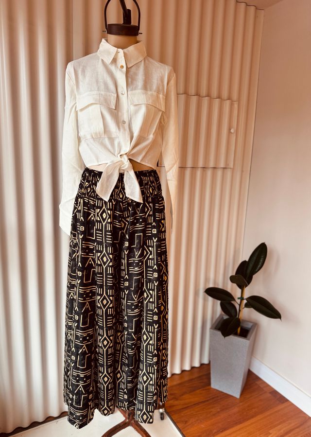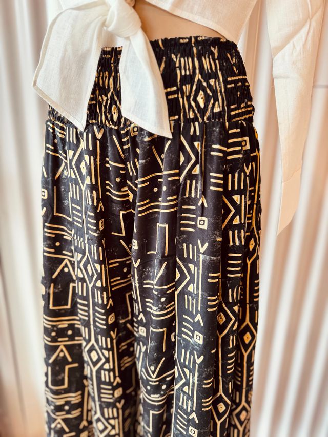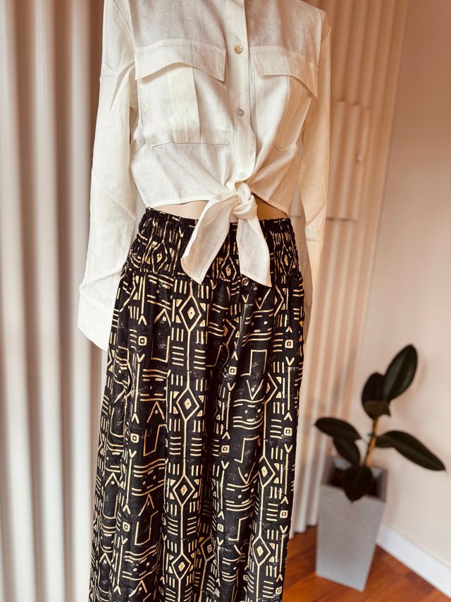 Diseñado para brindar elegancia sin esfuerzo, cuenta con una cintura elástica que se adapta cómodamente a tu cuerpo, ofreciendo libertad de movimiento y un calce favorecedor.