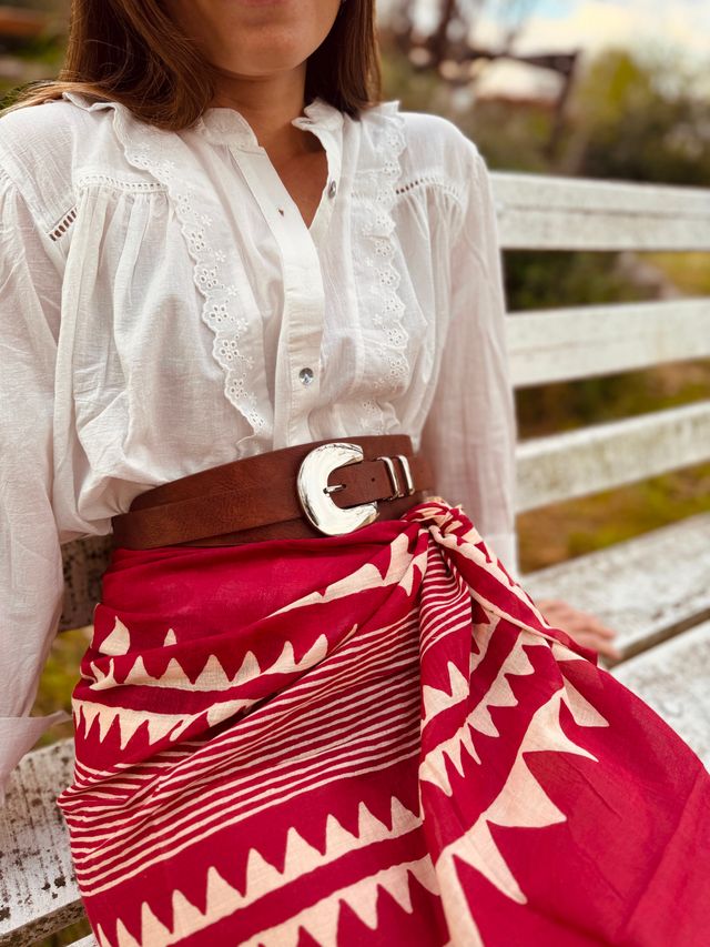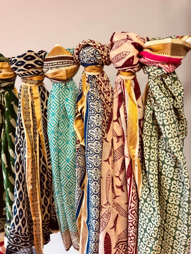 Pañuelos realizados con la técnica artesanal de blockprint, llenos de color y detalles únicos. Miden 170 x 100 cm, lo que los hace súper versátiles: podés usarlos como accesorio, pareo, top o hasta como detalle para la decoración.