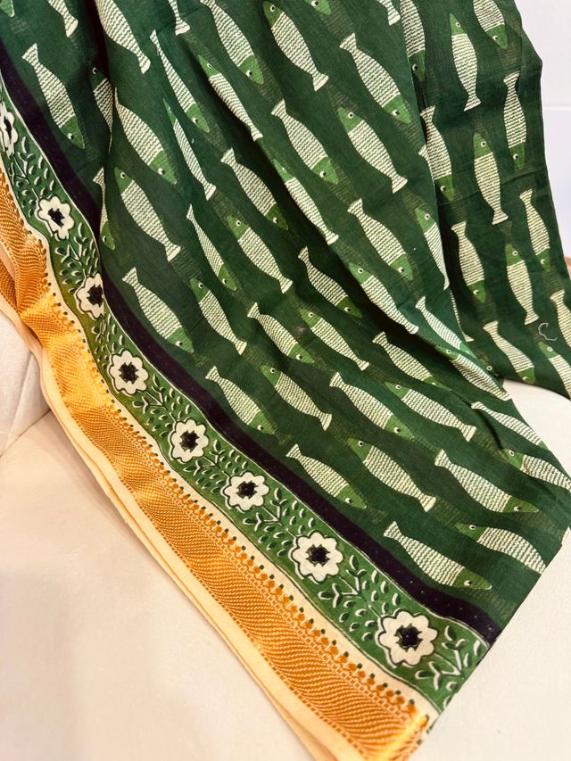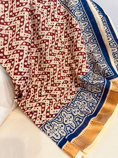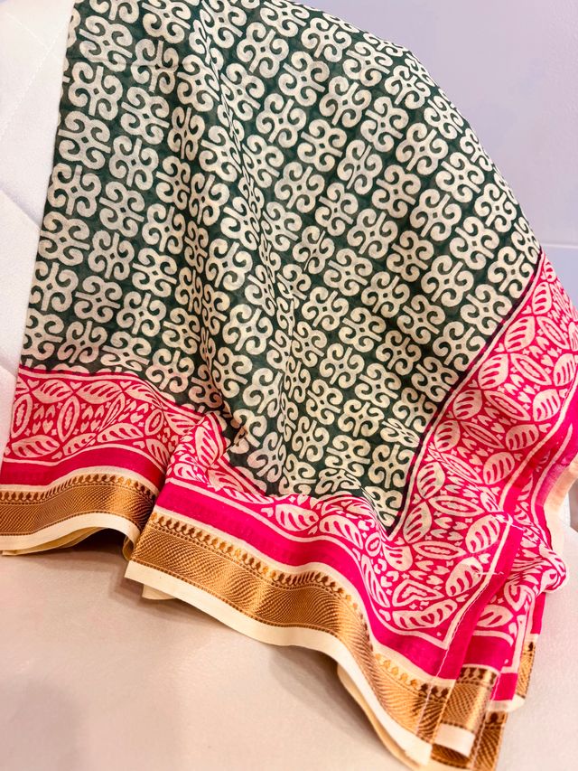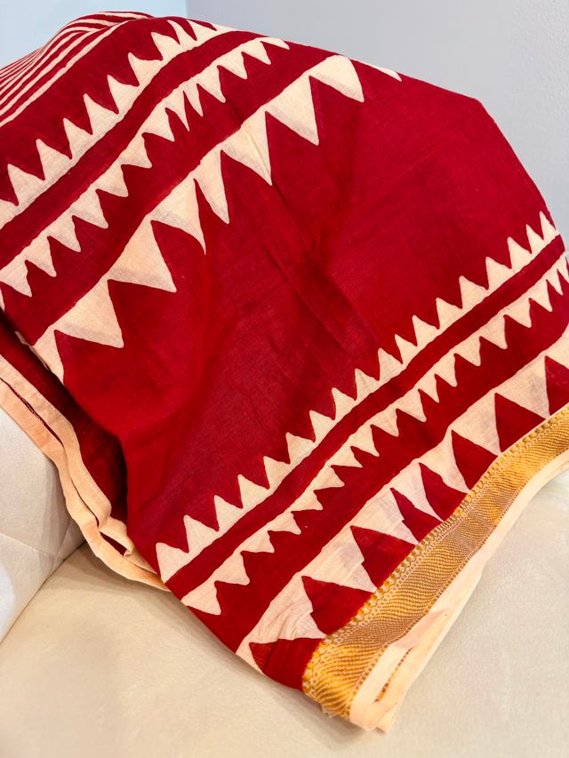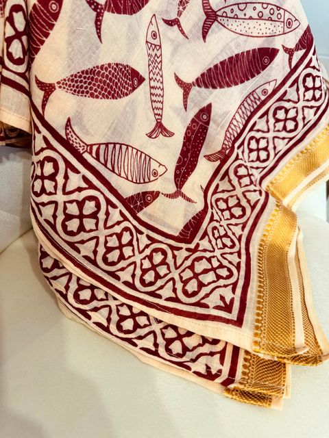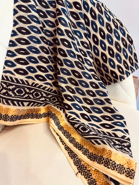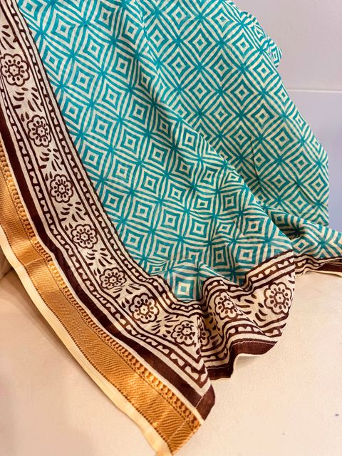 Pañuelos artesanales blockprint de 170x100 cm, coloridos y versátiles. Úsalos como accesorio, pareo, top o deco. Con delicada guarda dorada. Ver más detalles