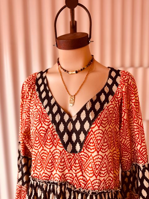 Tiene esa mezcla justa de frescura y estilo bohemio que hace que te sientas linda sin esfuerzo. Cada uno de nuestros vestidos tienen su impronta, con estampas vibrantes y detalles únicos. Son cómodos, versátiles y te salvan cualquier look.